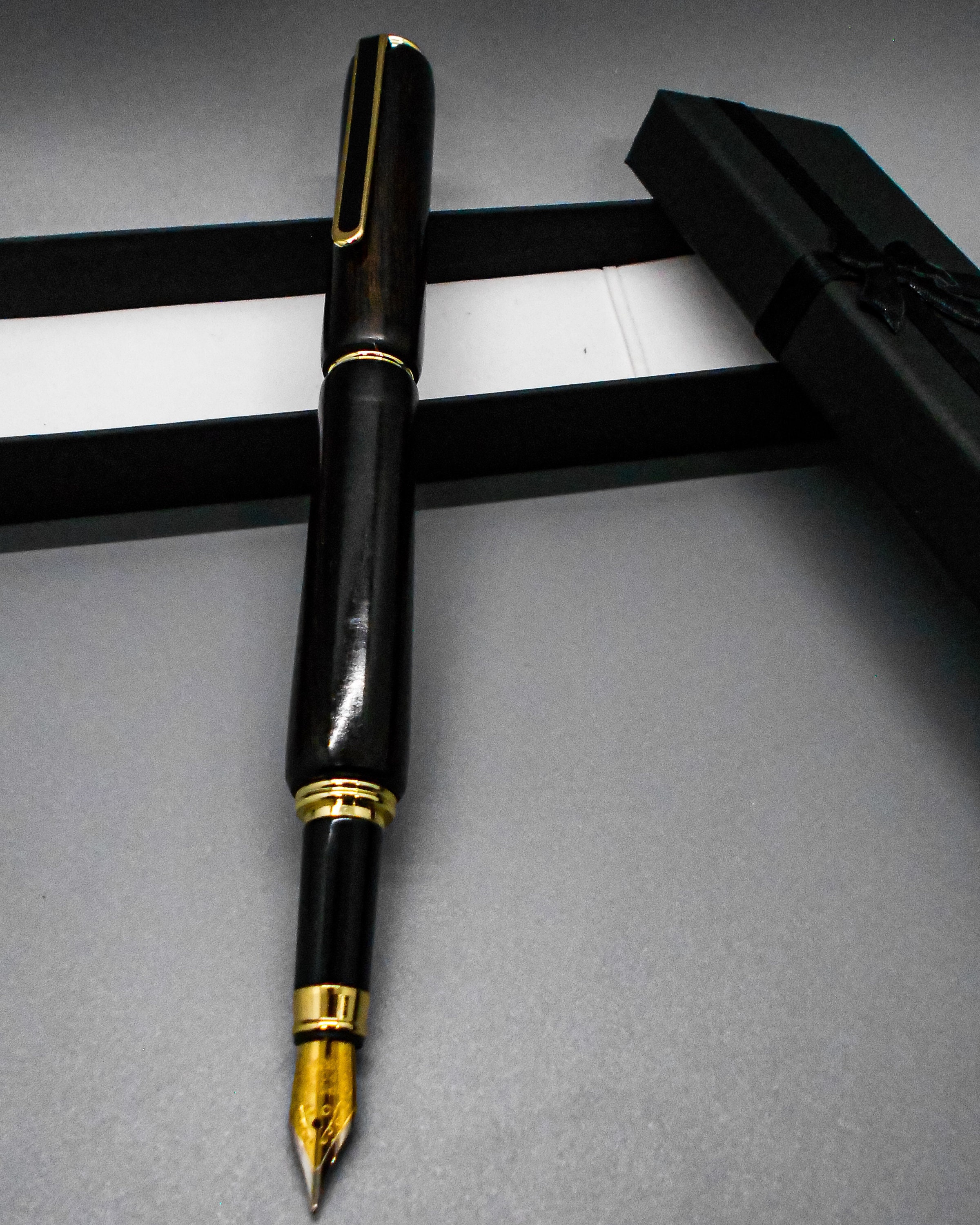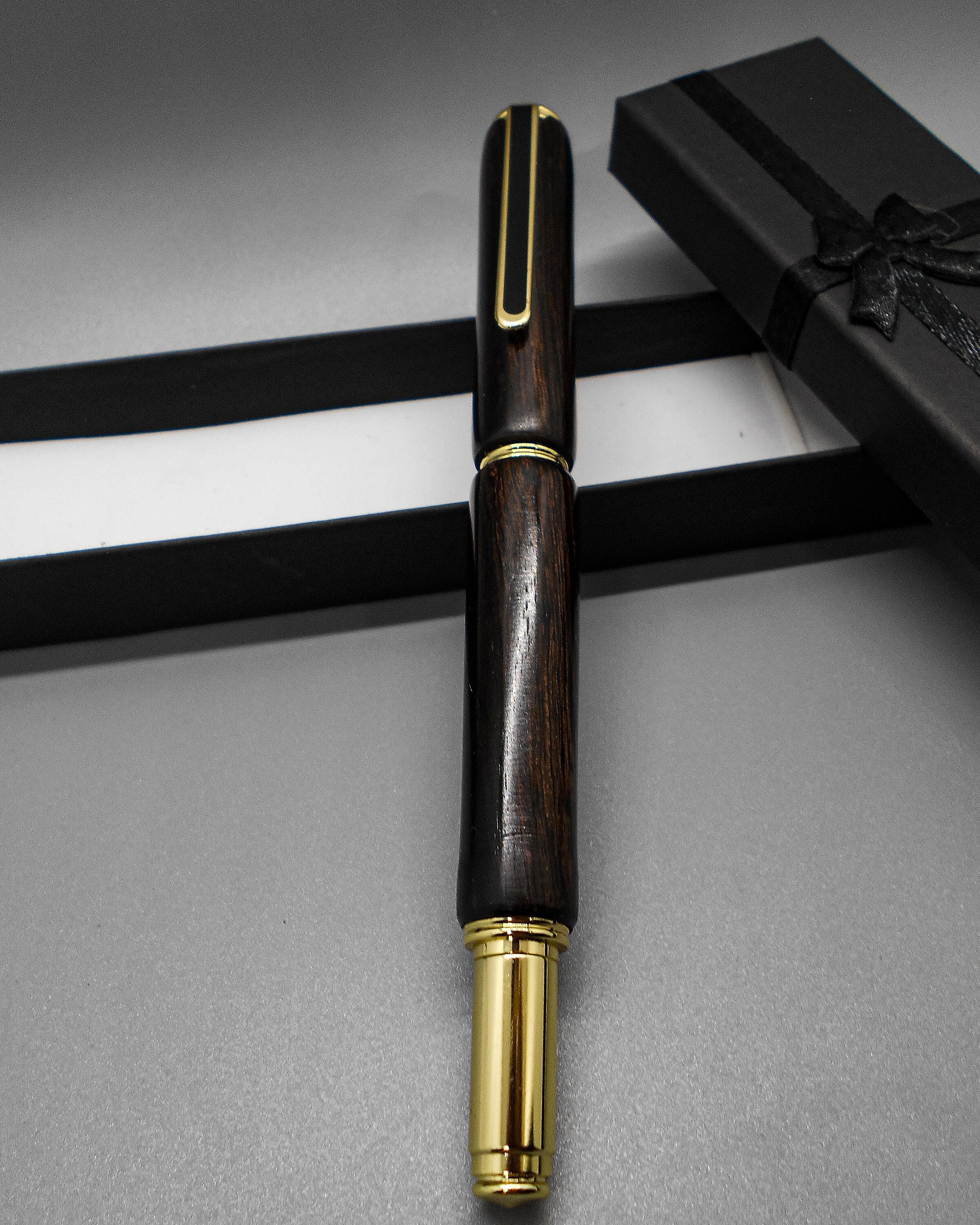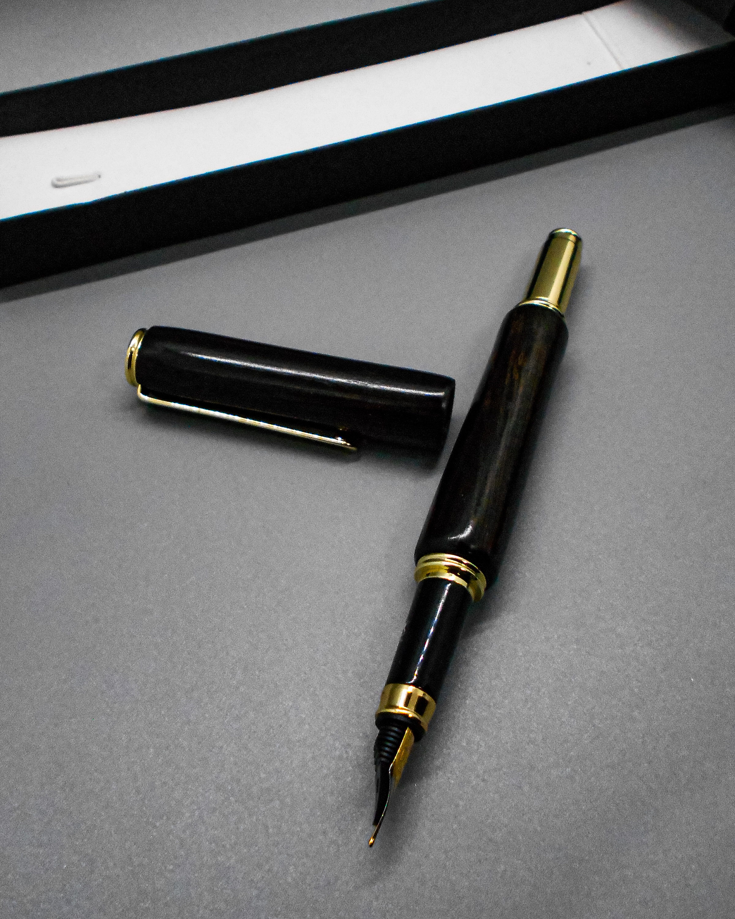 Beautiful hand turned fountain been made from African Blackwood. I use a high end kit that will write beautifully and last for many years. This will make a wonderful gift for graduation or Mother's Day. It will please anyone who appreciates a high end writing instrument that is as gorgeous as it is functional.