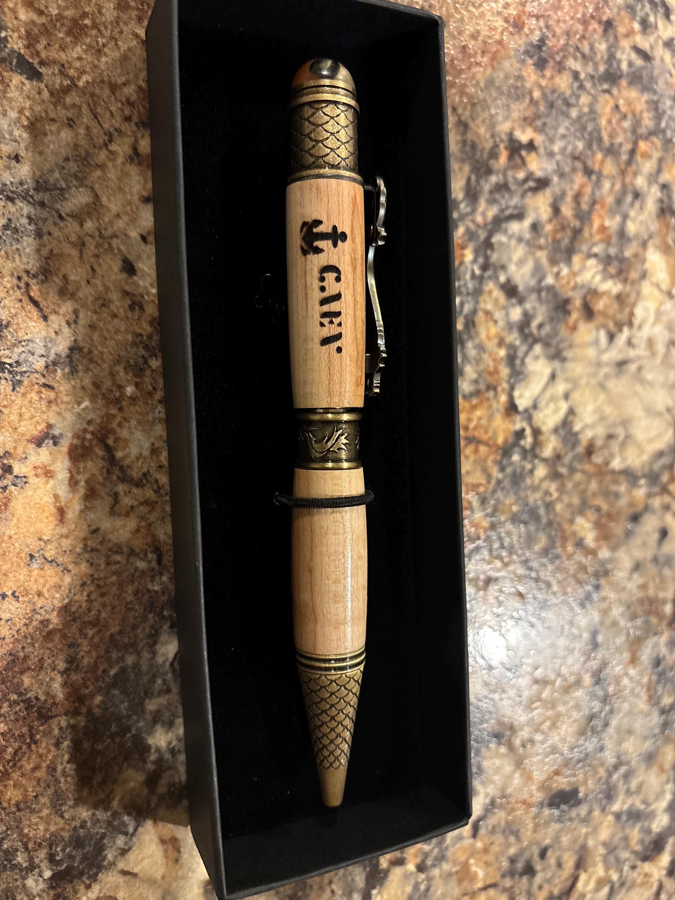 Add this distinctive Dragon pen to your collection or gift it to someone who appreciates artistry and function combined. Limited availability due to its handmade nature—order now to secure yours with personalized options and friendly customer support provided. Please handle with care and avoid prolonged exposure to moisture to preserve the wood’s character. Shipping includes secure packaging for safe delivery.