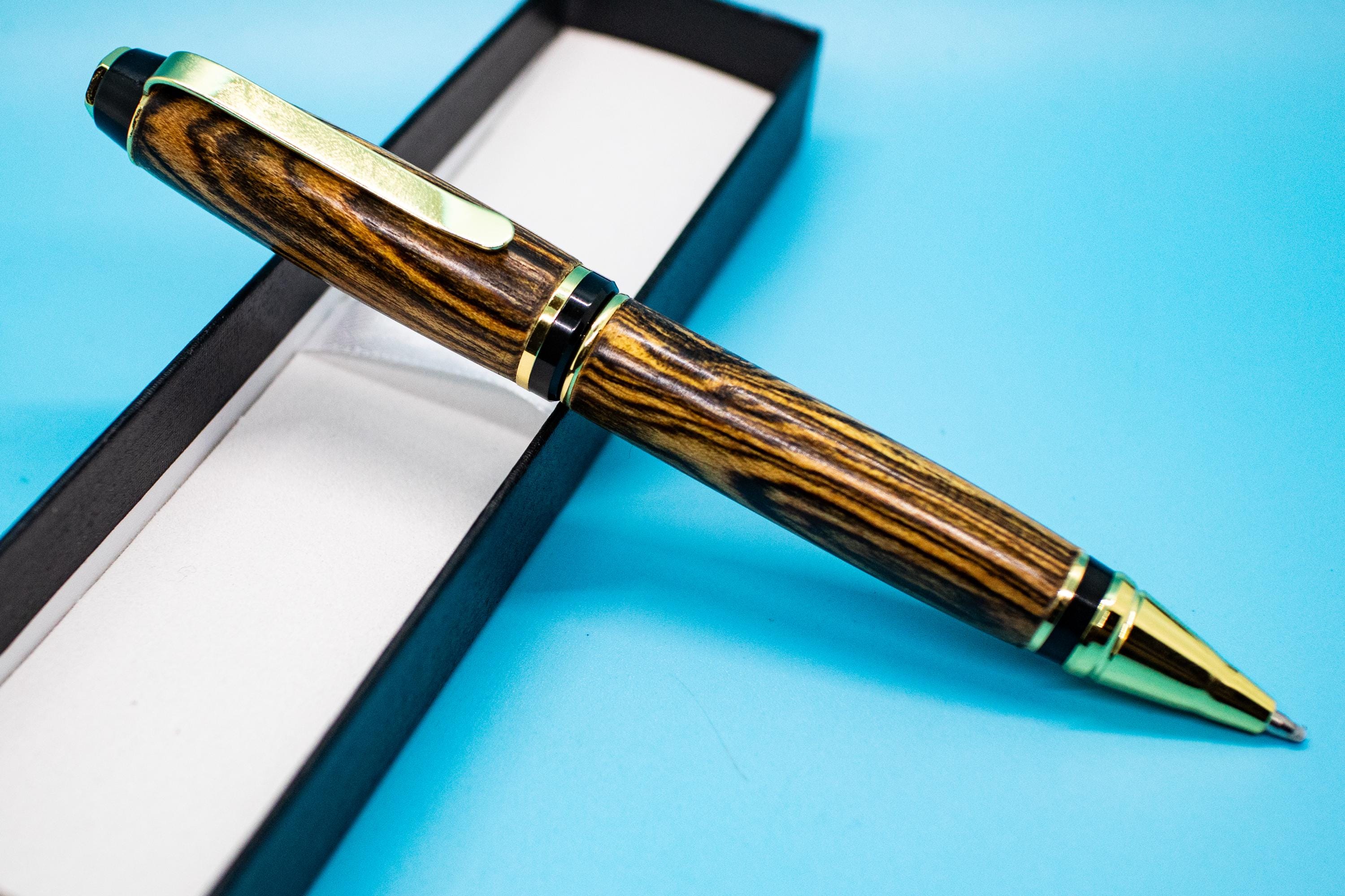 Elevate your writing experience with this exquisite cigar style ballpoint pen, handcrafted from stunning Bocote wood. Perfectly designed for those who appreciate luxury and craftsmanship, this handmade collectible pen combines elegance with functionality. Whether you're a writer, collector, or searching for a distinctive gift, this luxury writing pen offers both style and performance.