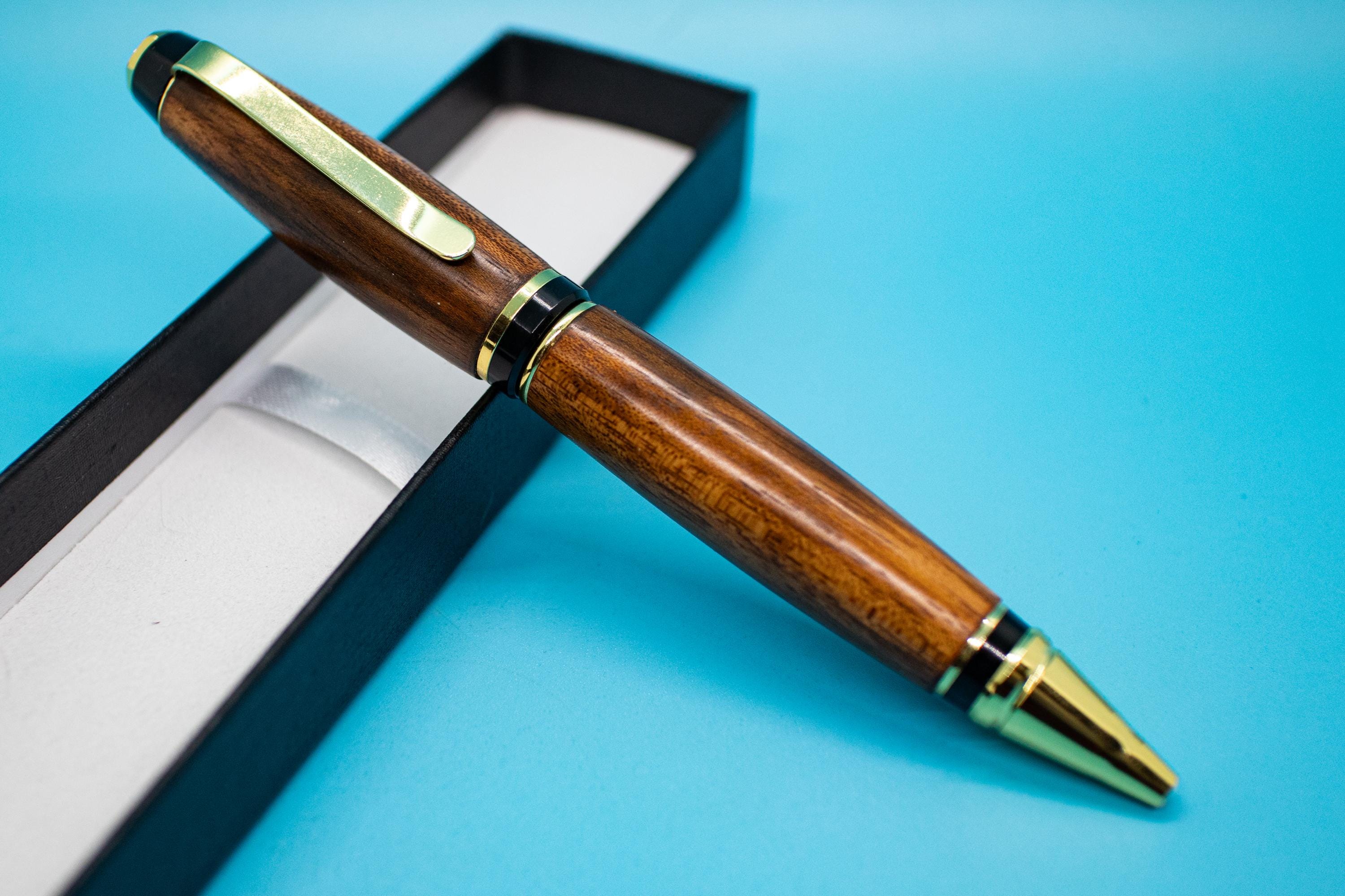 Elevate your writing experience with this exquisite cigar style ballpoint pen, handcrafted from stunning Goncalo Alves, also known as Tiger Wood. Perfectly designed for those who appreciate luxury and craftsmanship, this handmade collectible pen combines elegance with functionality. Whether you're a writer, collector, or searching for a distinctive gift, this luxury writing pen offers both style and performance.